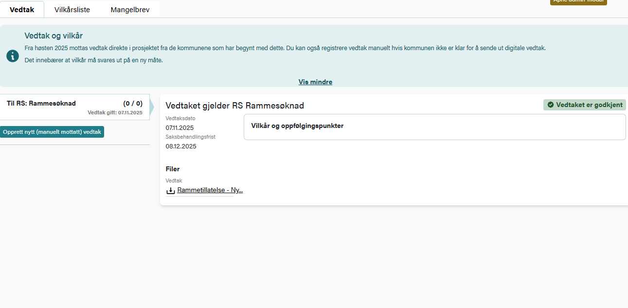 Prosjekter i din bedrift - sett status